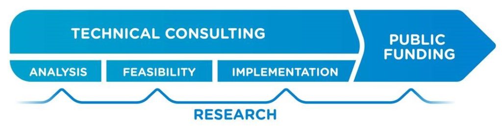 For the identified optimisation measures, a feasibility study is conducted. The aim is an optimal integration of technology and efficiency measures into existing processes, via a specific sizing. The energy and CO2 reduction potential is calculated and evaluated regarding economic, legal and social conditions.At the end of the feasibility study, we provide an economic calculation and sizing, as well as recommendations for specific public funding opportunities and communication measures.